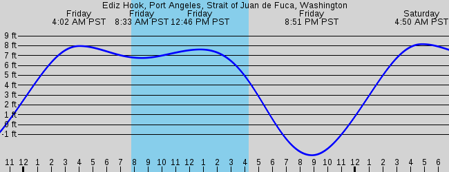 Today there was 09 hours and 33 minutes of sun and the average temperature is 45F. 9pm PST Nov 30 2021-6pm PST Dec 7 2021. Wind Real-Time Port Angeles Coast Guard Air Station 18miles.